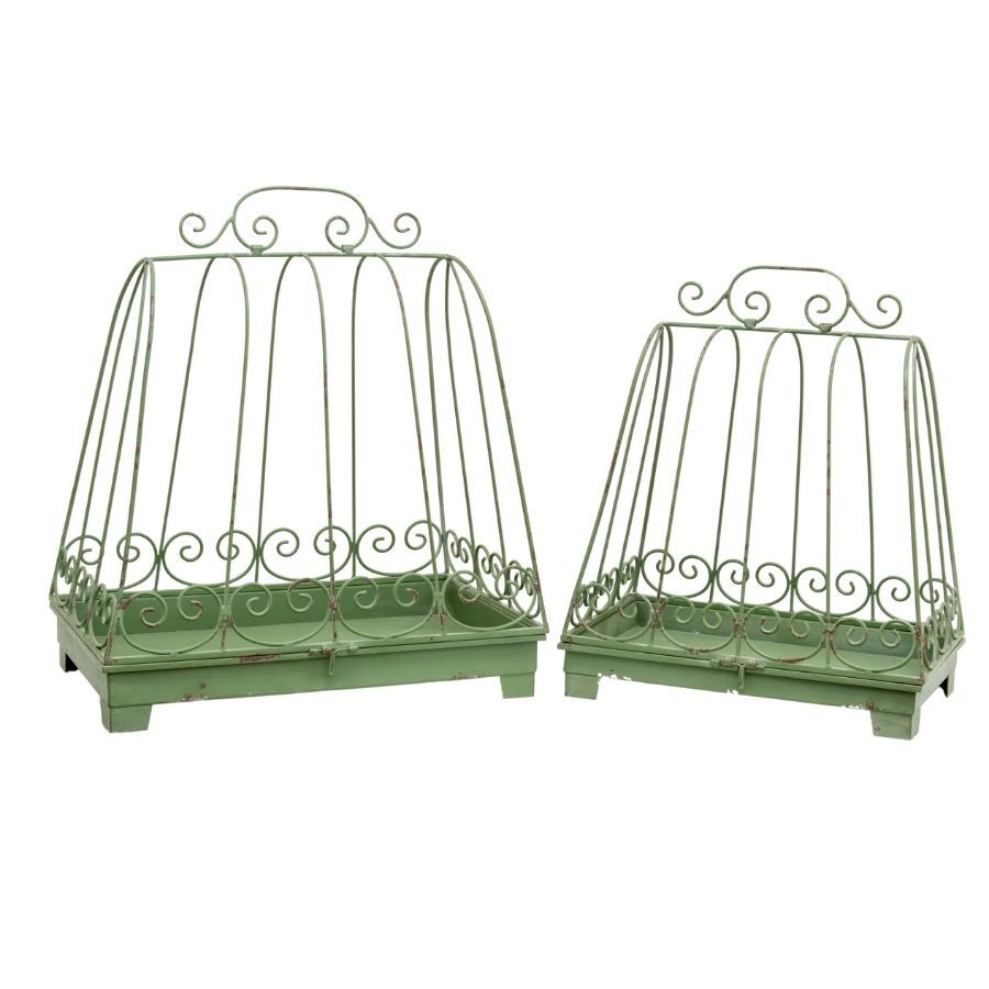 Shield your beloved plants from your pets or wild birds in style with Nested Handbag Cloche Planters on Stands Set/2. Crafted with precision, these planters offer stylish and protective housing. They are easy to carry and their beautiful shape makes them a focal point in your garden or Hallways.