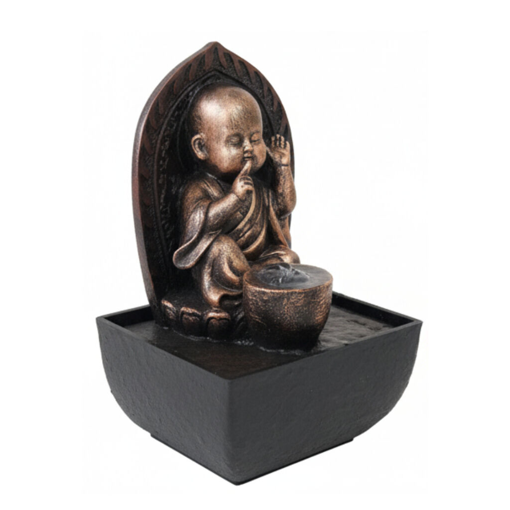 Create a peaceful sanctuary in your outdoor space with the Auric Hush Monk Fountain. Perfect for a garden corner, patio, or covered balcony, this fountain’s gentle water flow brings calm and balance to any setting. Style it with lush greenery, stones, or ambient lighting to enhance its serene and contemplative charm.