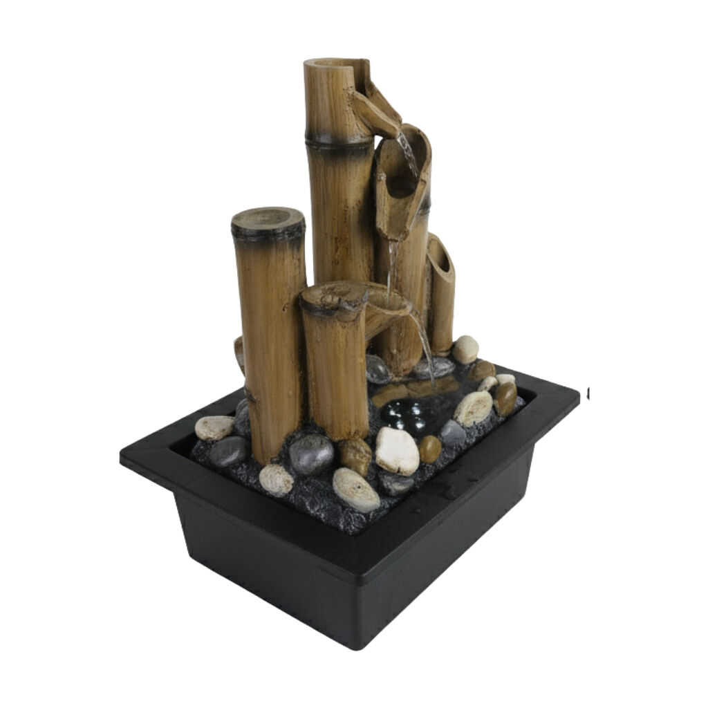 The classic, rhythmic elegance of a Japanese bamboo water feature is perfectly replicated by the Willow & Silk Bamboo Odoshi 23x18x27cm fountain. Water collects in a short bamboo chute before tipping over with a gentle, distinct clack, providing a unique, meditative, and structured sound.