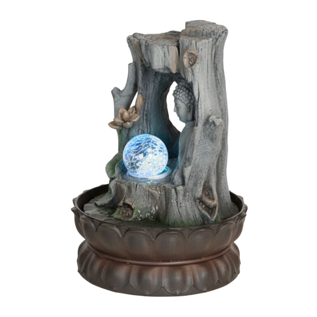 A nature-inspired design, the Willow & Silk Branch Buddha 21x21x28cm fountain features a Buddha figure seated beneath a stylized tree branch. Water gently flows from the branch tips, mimicking a natural, light shower in the forest, and creating a soft, refreshing sound that promotes natural tranquility.