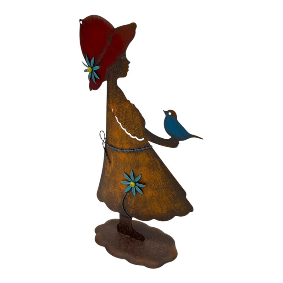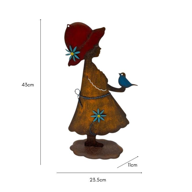 A vivid, joyful garden statue of a girl holding a bird full of life and charm. She'll brighten any garden corner and bring a smile to everyone who passes.