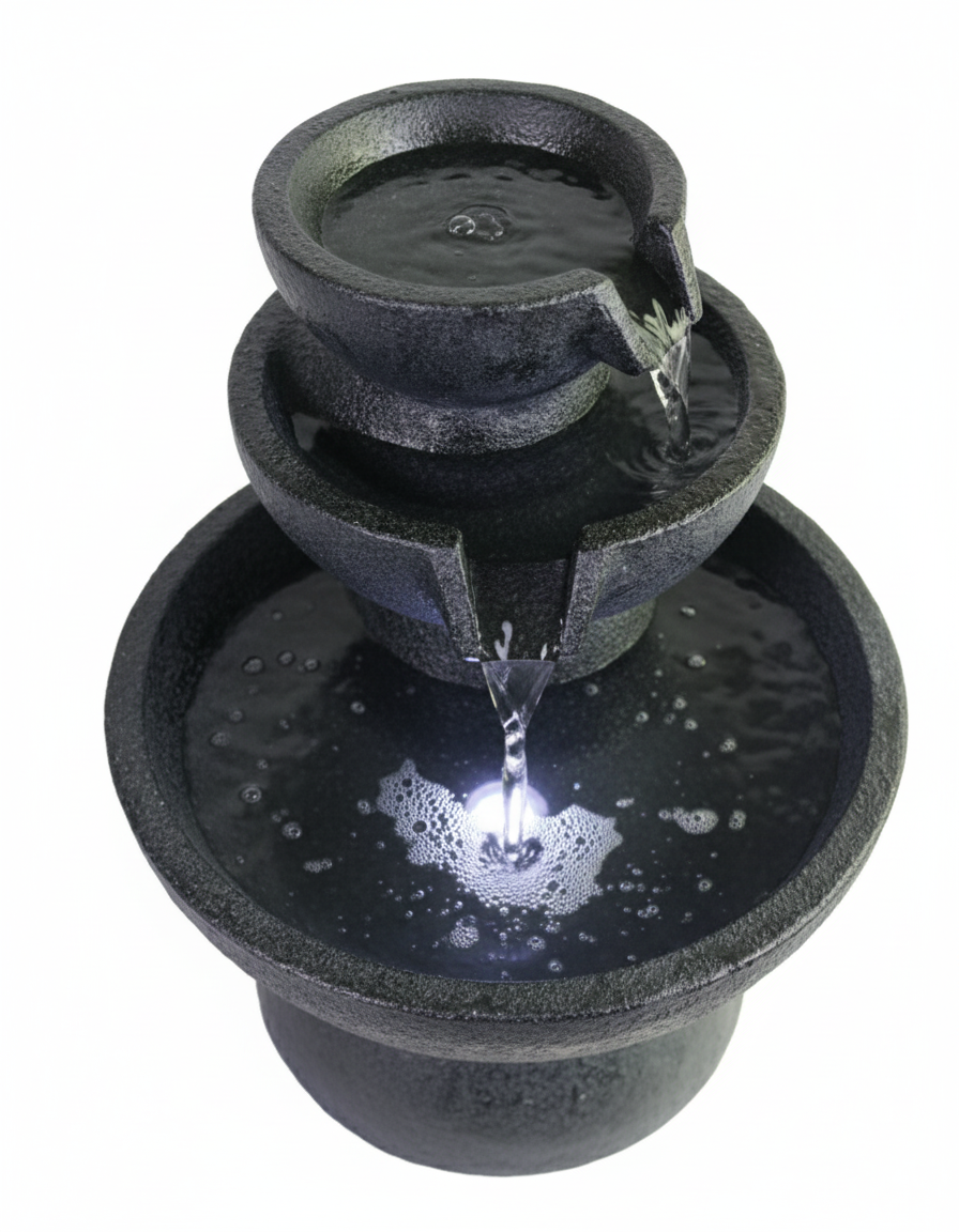 • Subtle Display: The water bubbles gently, creating a contained, soft visual and sound effect.