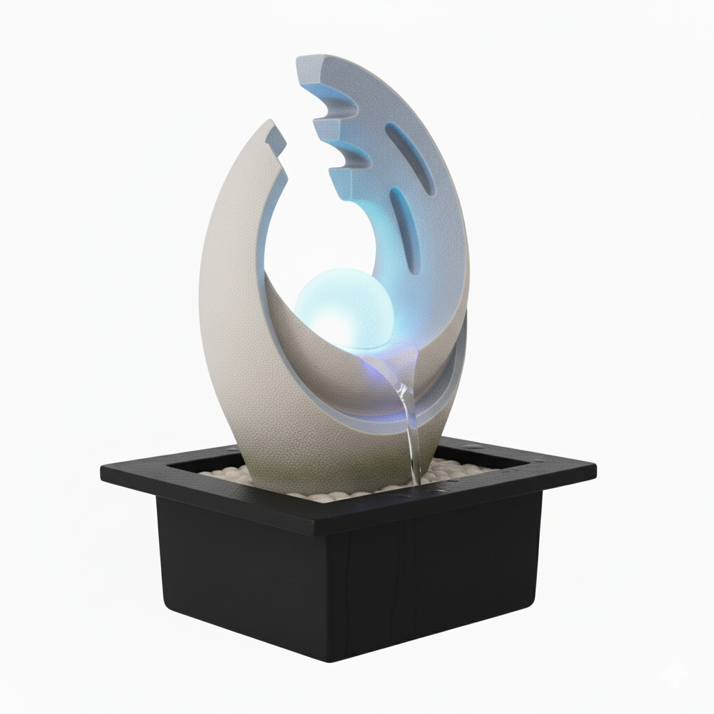 Inspired by the fluid motion of a wave, the Willow & Silk Curl Art 21x19x29cm fountain is a modern sculptural piece featuring water flowing down a smooth, tall, curled column into a hidden base. This creates a visually dynamic flow and an ultra-quiet, non-disruptive, consistent sound of movement.