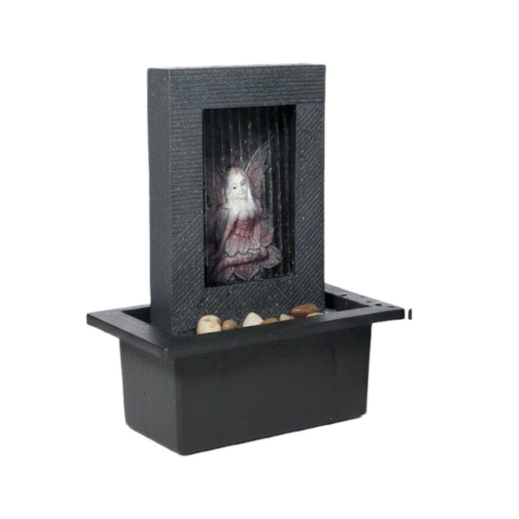 A touch of magic and delicate fantasy is brought into your home by the Willow & Silk Fairy Rain 21x18x25cm fountain. A graceful fairy figure is sheltered beneath a canopy, with water gently raining down, creating a light, enchanting sound that evokes a sense of wonder and peaceful charm.