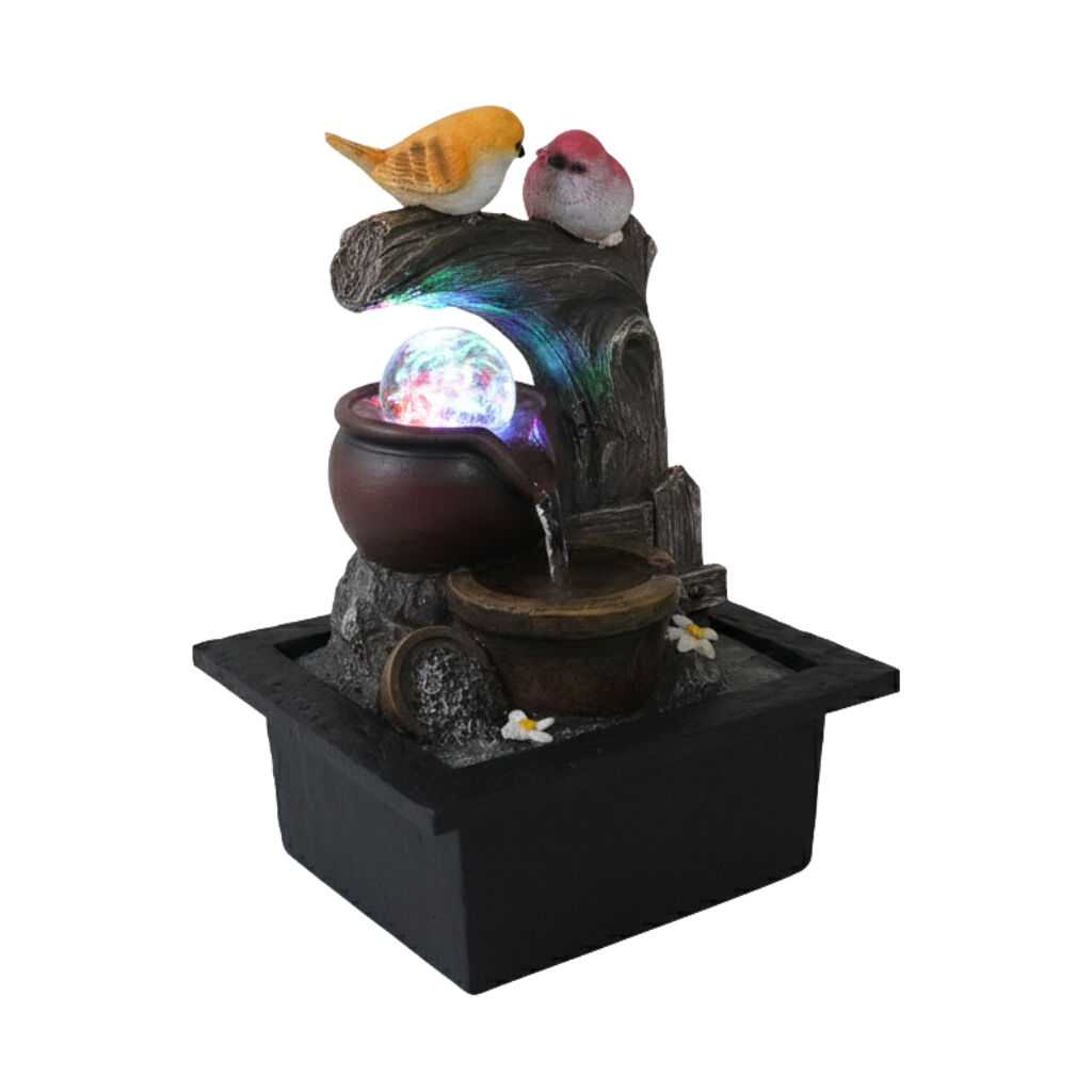 Featuring two detailed bird figures perched on a naturalistic rock formation, the Willow & Silk Garden Birds fountain brings a slice of the wilderness indoors. Its gentle cascade provides a lovely, natural soundscape perfect for bird lovers.