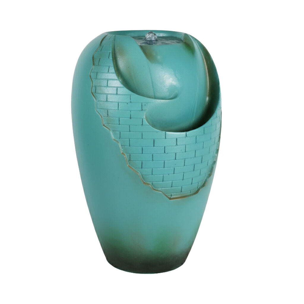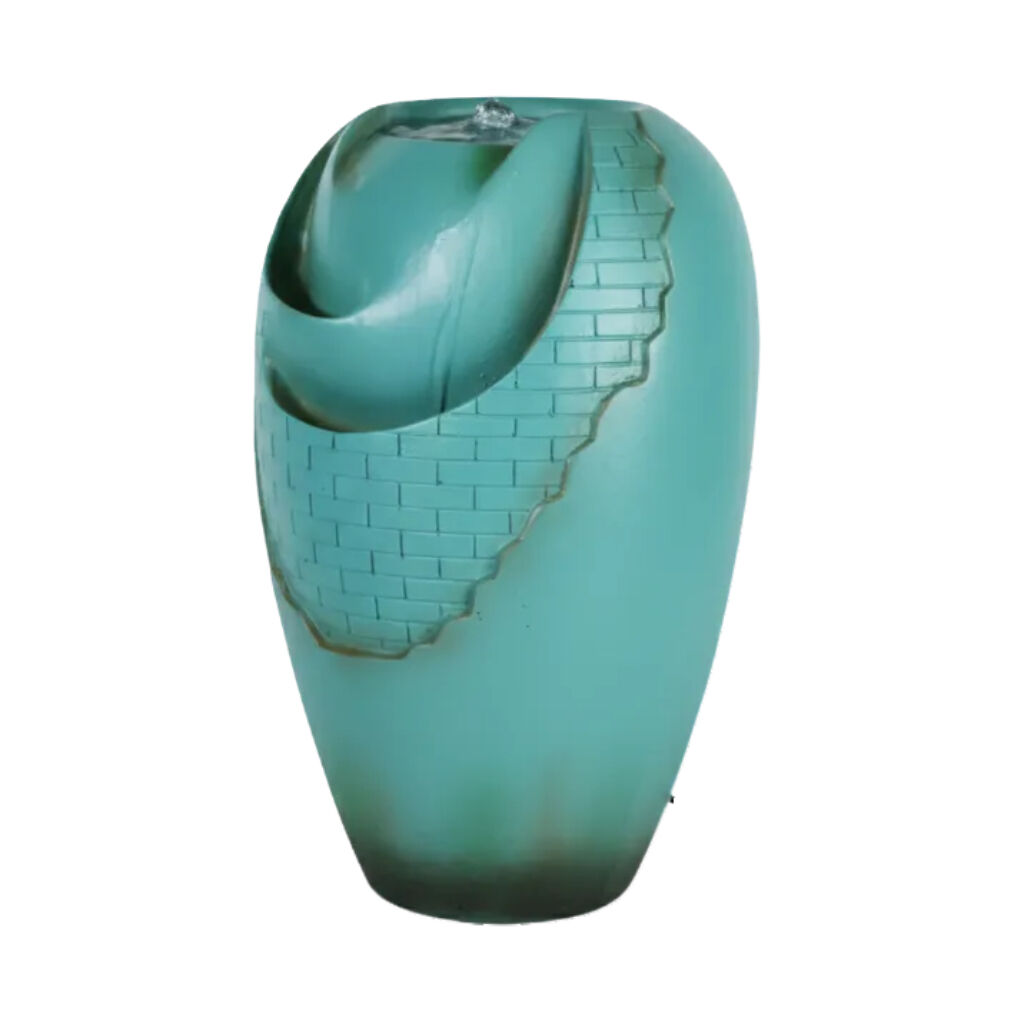 The Willow & Silk Glazed Jar fountain is a classic piece featuring a beautiful, tall, glazed urn from which water gently pours. The glossy, rich finish and subtle water flow add a touch of simple elegance.