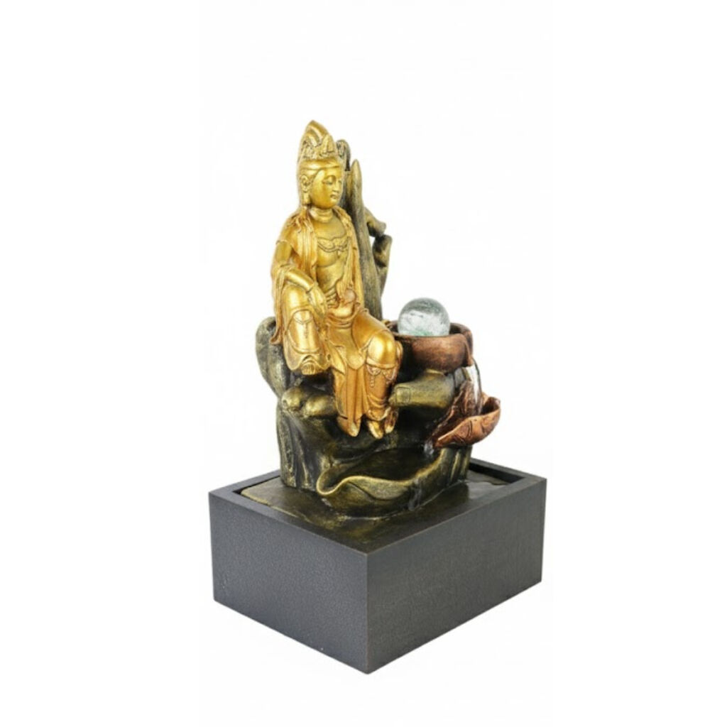 The elegant Willow & Silk Guanyin Aura fountain features the beloved Bodhisattva of Compassion, Guanyin. The gentle water flow around the figure enhances the spiritual and compassionate atmosphere of the space.