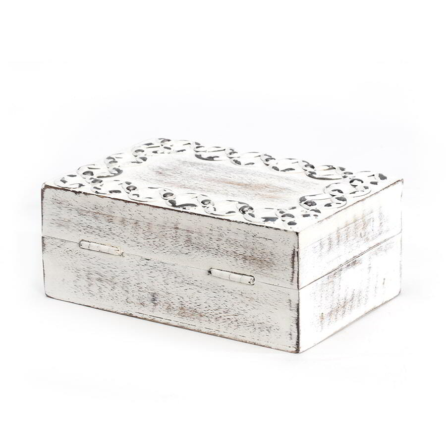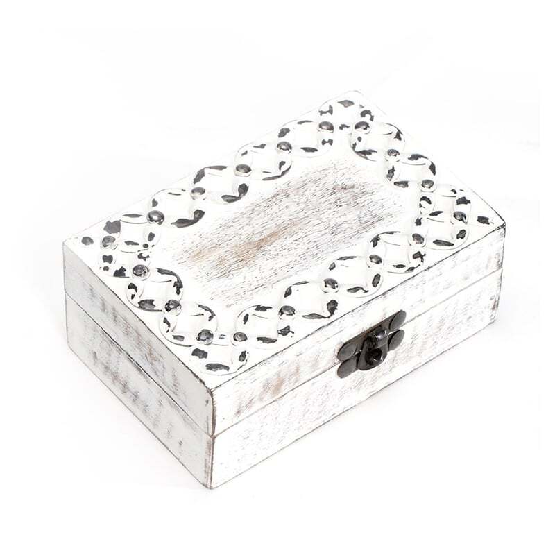 • Handcrafted Mangowood Whitewash Links Trinket Box w/Clasp 15x10cm