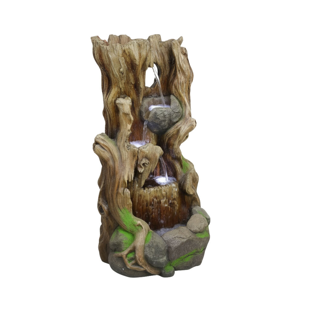 Mimicking the look of aged, hollowed timber, the Willow & Silk Natural Oldwood fountain brings a rustic, weathered elegance to your outdoor area. Water flows smoothly through the 'wood' channels, creating a quiet, earthy ambiance.