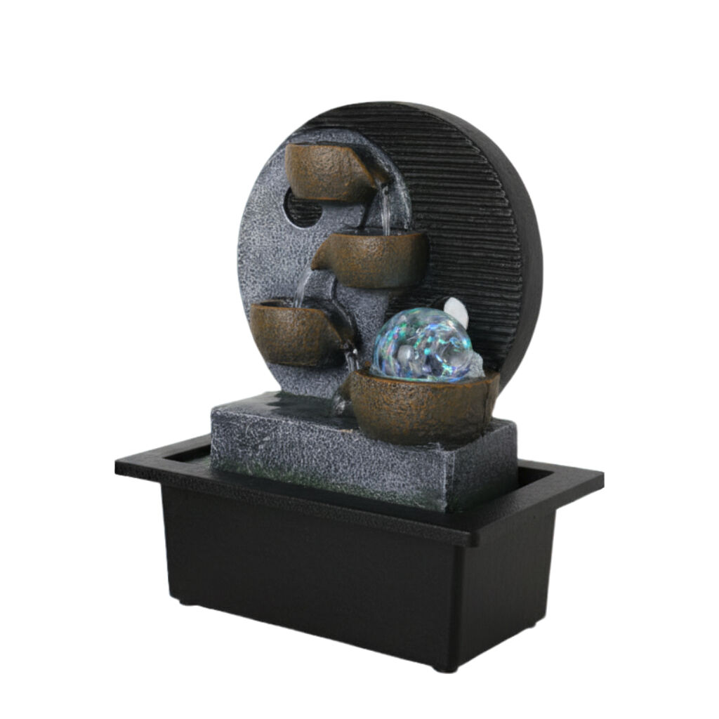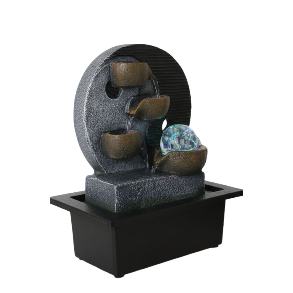 The essence of balance and harmony is beautifully captured by the Willow & Silk Pottery Yin Yang 23x18x26cm fountain. This unique piece features water flowing from the centre, dividing and pooling into two contrasting but complementary sections, creating a subtle, dual sound effect that is perfect for contemplation.