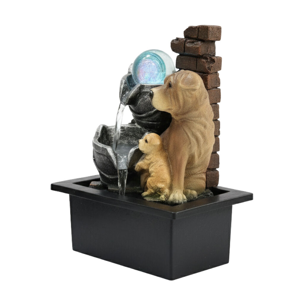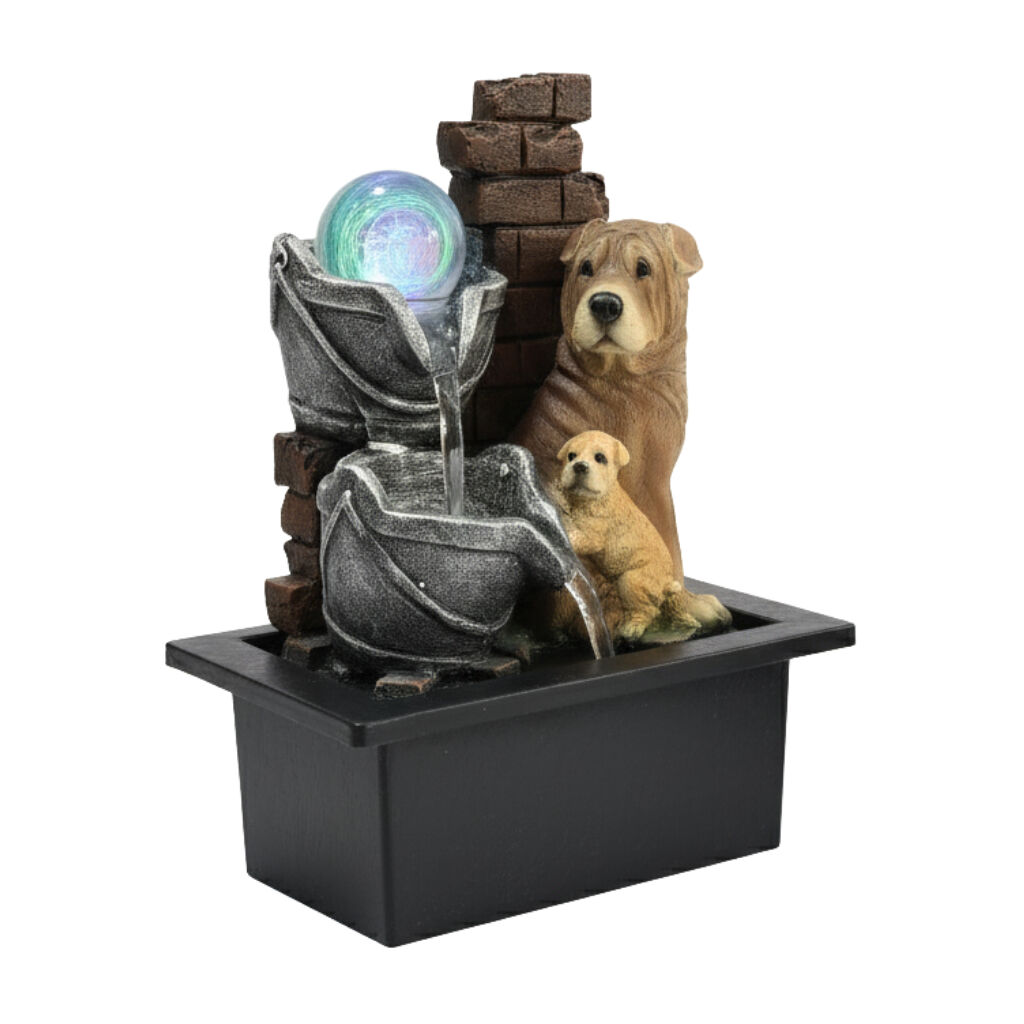 The adorable Willow & Silk Puppy Pot fountain features a curious puppy peeking out from a tipped pot, adding an element of playful innocence to your space. The gentle cascade of water from the pot creates a tranquil yet lively scene.
