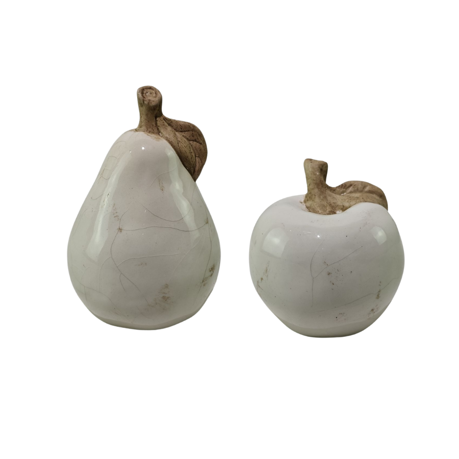 A delightful ceramic set of an apple and pear sweet, sculptural and full of farmhouse charm. Perfect for kitchen shelves, dining tables and country-style displays.