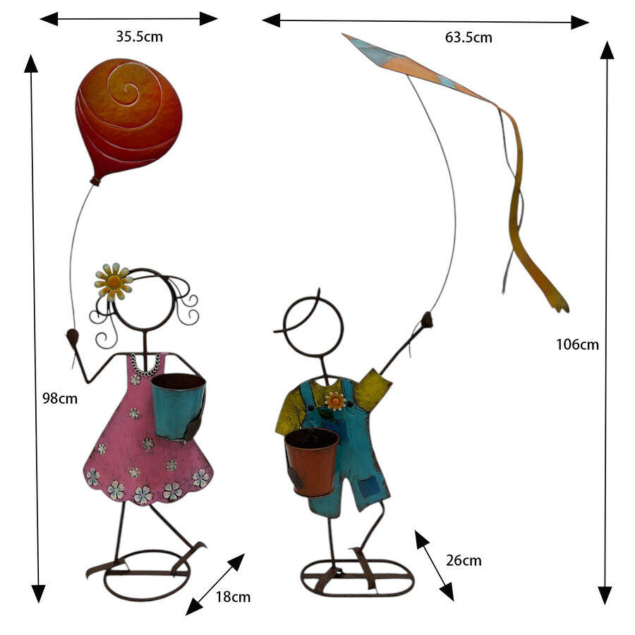 Brighten up your garden or indoor space with our Set of 2 Assorted Colorful Playing Kids Planters. Featuring charming designs of two children joyfully holding kites and balloons, these planters add a playful touch to any environment. Crafted from durable materials, they are perfect for showcasing your favorite plants while inspiring creativity and imagination in children. Ideal for both indoor and outdoor use, these delightful planters are a wonderful addition to any home, making gardening fun and engaging for the little ones.