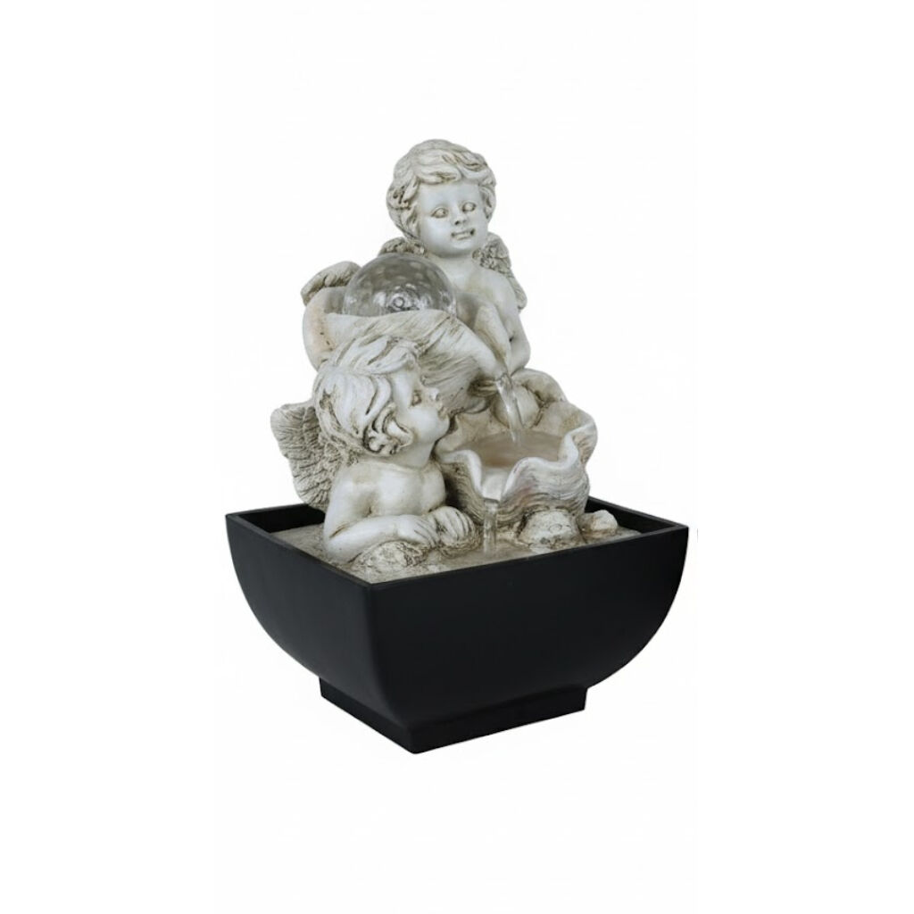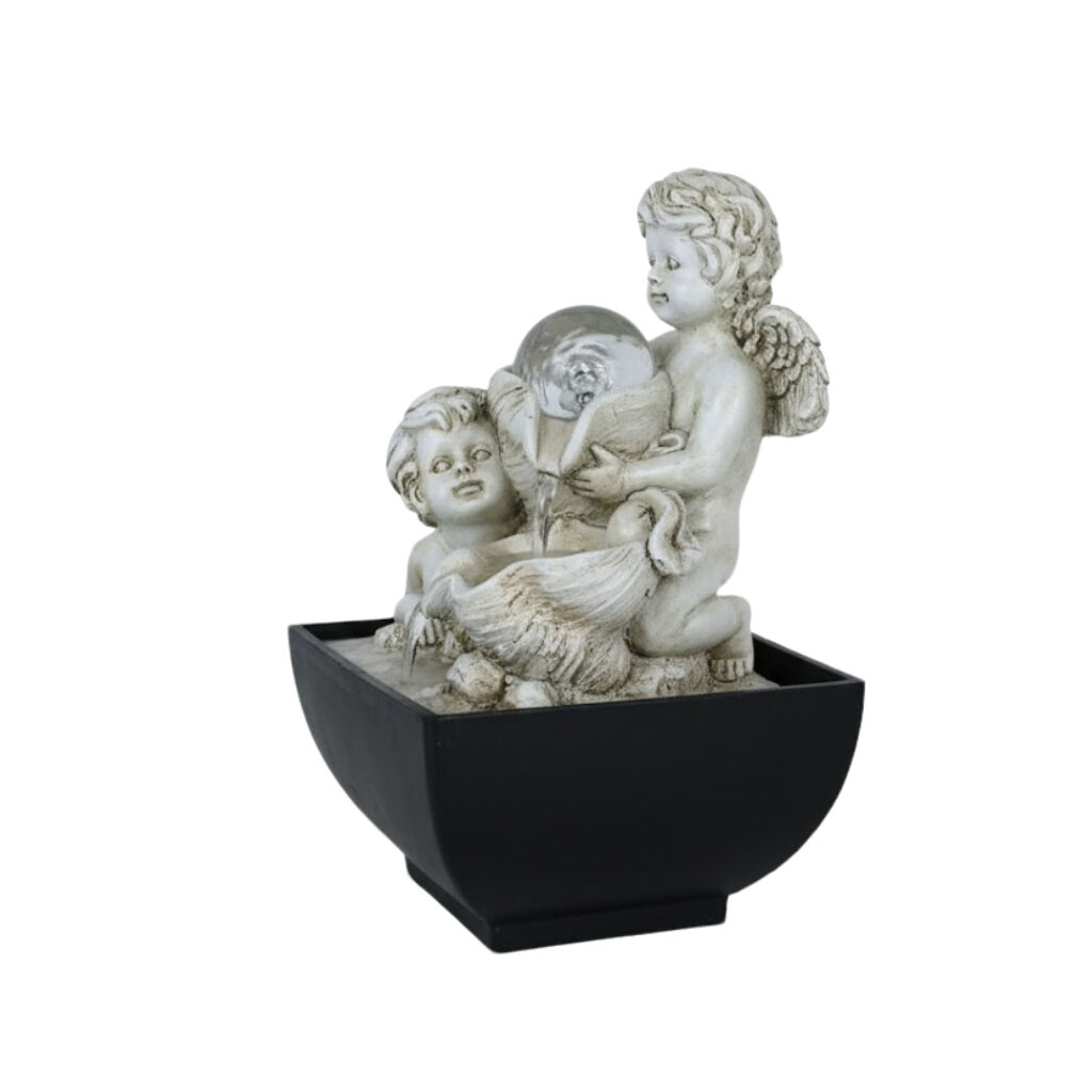 A touch of classical charm is added to any room with the Willow & Silk Shell Cherubs fountain, which features two classic cherub figures playing by a large seashell basin. Water gently flows from a hidden source, creating a subtle sound that evokes a sense of innocent joy and coastal serenity.