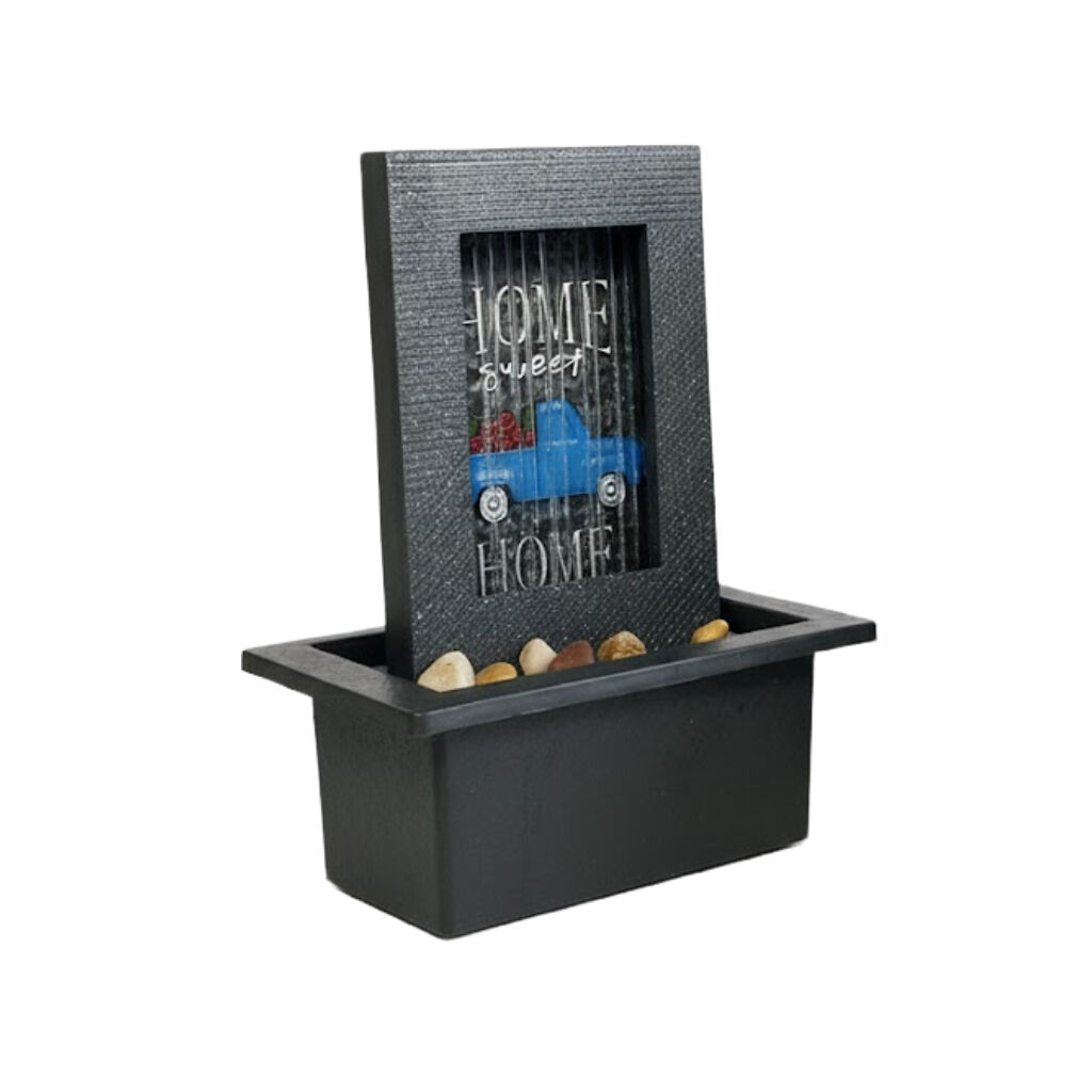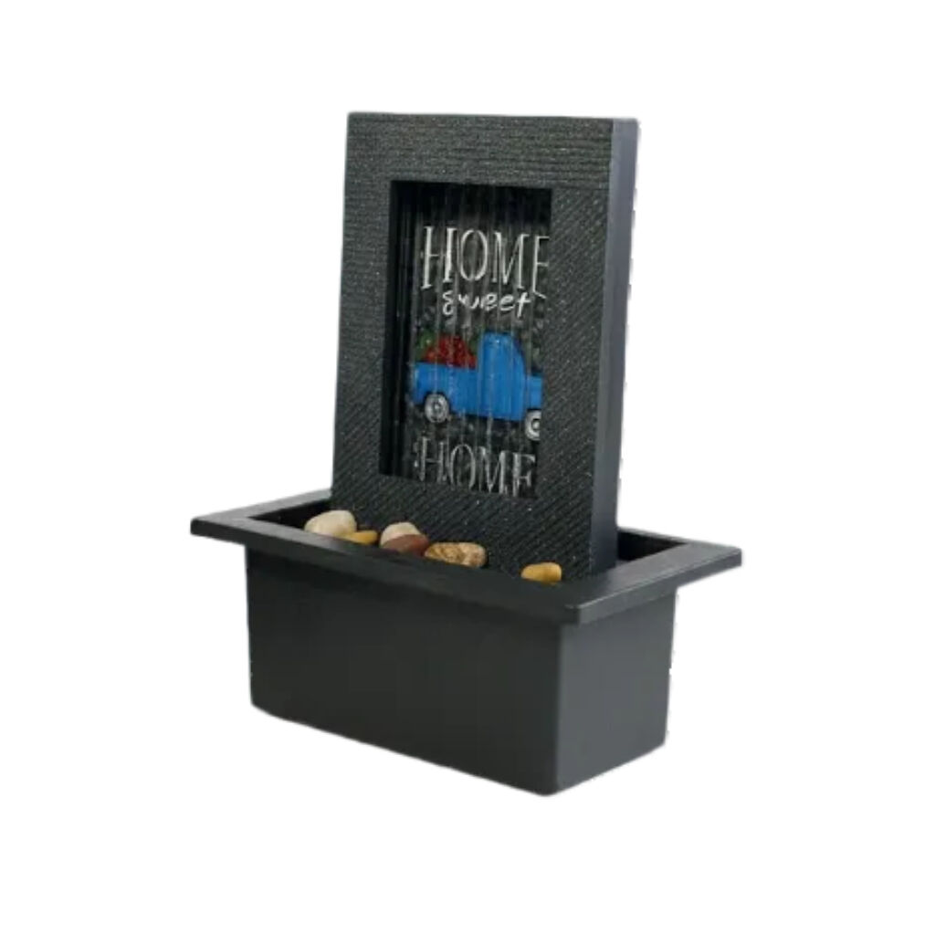Embodying domestic warmth and comfort is the heartfelt Willow & Silk Sweet Home Rain 21x18x25cm fountain. It features a miniature home scene beneath a rain shelter, with the calming sound of water creating an atmosphere of safety and tranquility, perfect for a gathering space.
