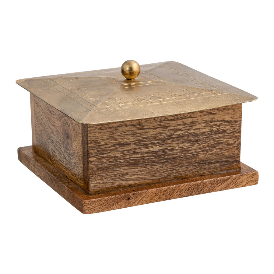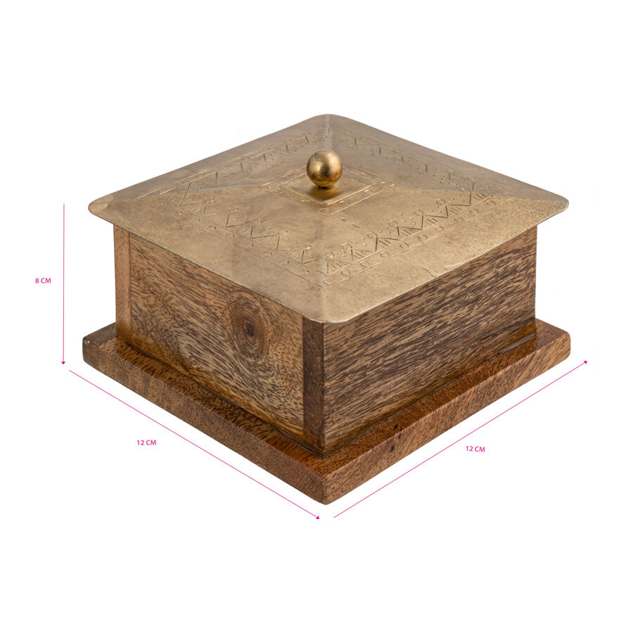 Elevate your console or coffee table into a visual delight with a Golden Trinket Box w/Metal Pressed Lid. Organise your artificial jewellery item, old coin collection and other small keepsakes. Adds a touch of sophistication to the console table or shelf with other vintage collections.