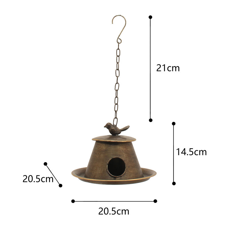 Enjoy the chirping of wild birds in your garden and wait for the birds to eat the seeds! Made from quality durable metal Hanging Garden Birdhouse w/ Feeder Tray is best suited to hang in the garden by a high tree or roof. Little wild birds will come and make it their home, fill the bird feeder tray with seeds and watch them enjoying their food.